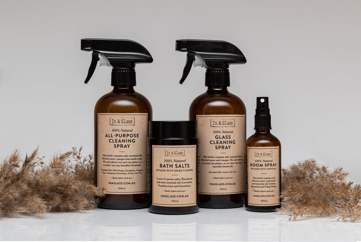 At In A Glass we care about what goes into your home, on your little ones, in your clothes and all around you. That's why our products are simple, no fancy labels or wording....just what you see, is what you get!